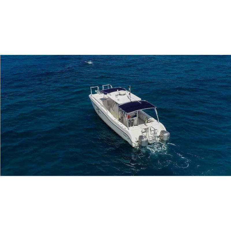 Yacht 515 is a six passenger, 33ft World Cat in Kona on the Big Island. She has ample shade, a fresh water shower, and gets guests into beautiful sites quickly. This is a perfect option for those that want a special excursion for their friends and family. Pricing includes 1 guide, boxed lunch, and any gear you might need. As a charter, you have a wide variety of options to choose from. The Captain will set your course together in advance or the morning of your experience. Should you choose to scuba dive, you will need to bring proof of certification. Enjoy this Big Island vessel and the stunning scenery above and below the Pacific Ocean.