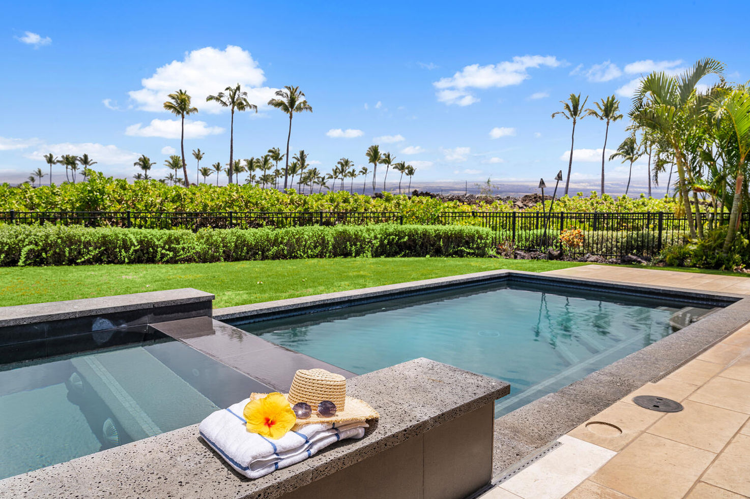 Experience twice the luxury with two pools, two spas, and two expansive lanais. Enjoy al fresco dining prepared on built-in BBQ grills, unwind in shaded lounge areas, or relax into the tranquil rhythm of the surrounding landscape.