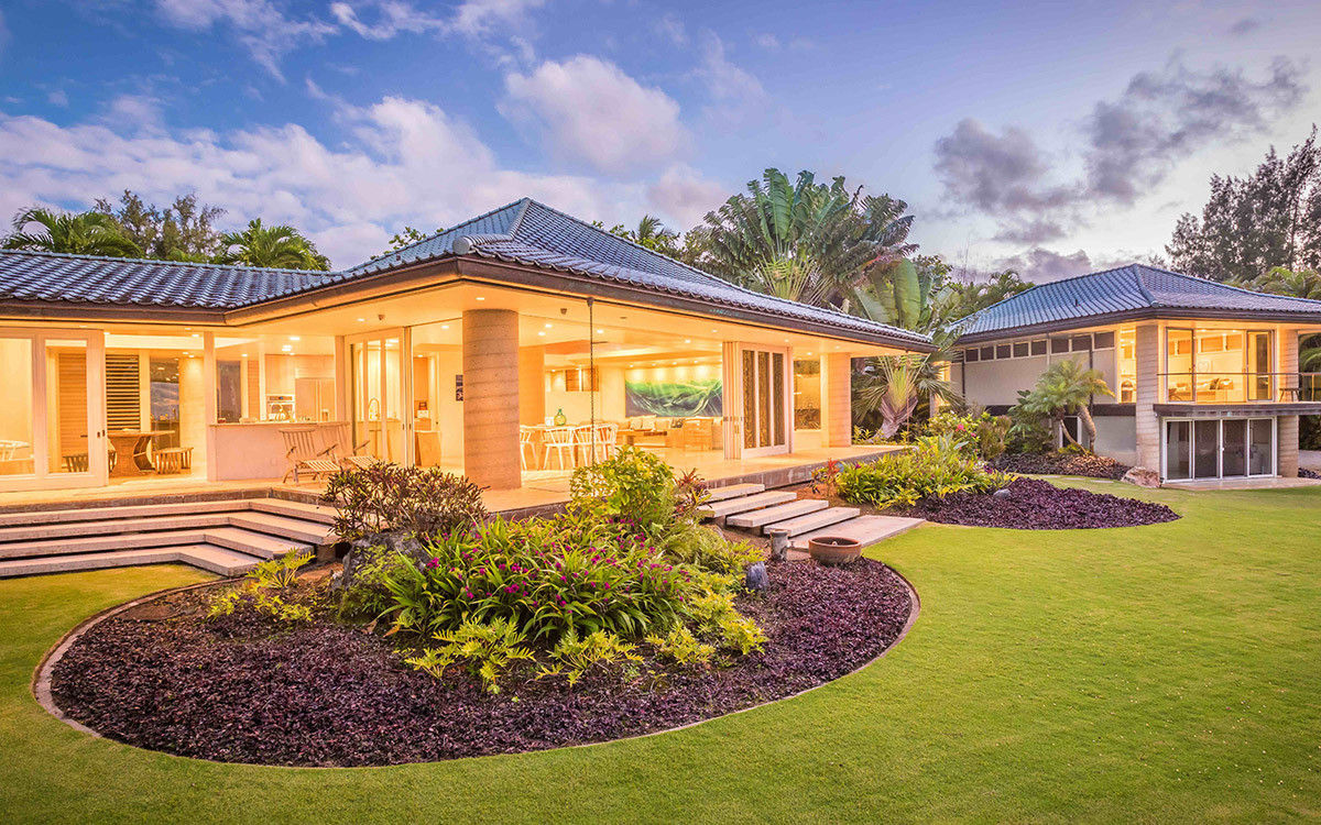 Ideally situated on Anini Beach on the North Shore of Kauai, this airy and remodeled beachfront modern home lets you take full advantage of one of Kauai’s most beautiful beaches. Just steps from the door, the calm turquoise waters of Anini offer year-round snorkeling and paddle-boarding due to the beautiful outer reef. In front of the estate, a lush garden with water features creates a haven of privacy. Main House with 6 max $1600, $1850, $4000