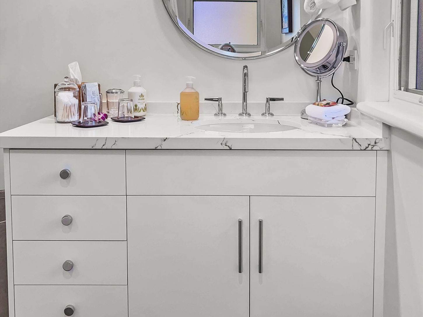 Inside, the home is designed for quiet connection. The light-filled great room and primary suite open to panoramic ocean views. The gourmet kitchen, fully equipped for the inspired home chef, flows seamlessly into spaces designed for shared meals and memorable conversation. Three serene bedrooms and two spa-quality bathrooms are outfitted with plush linens, thoughtful touches, and curated amenities, offering hotel-level comfort in the privacy of a private estate.